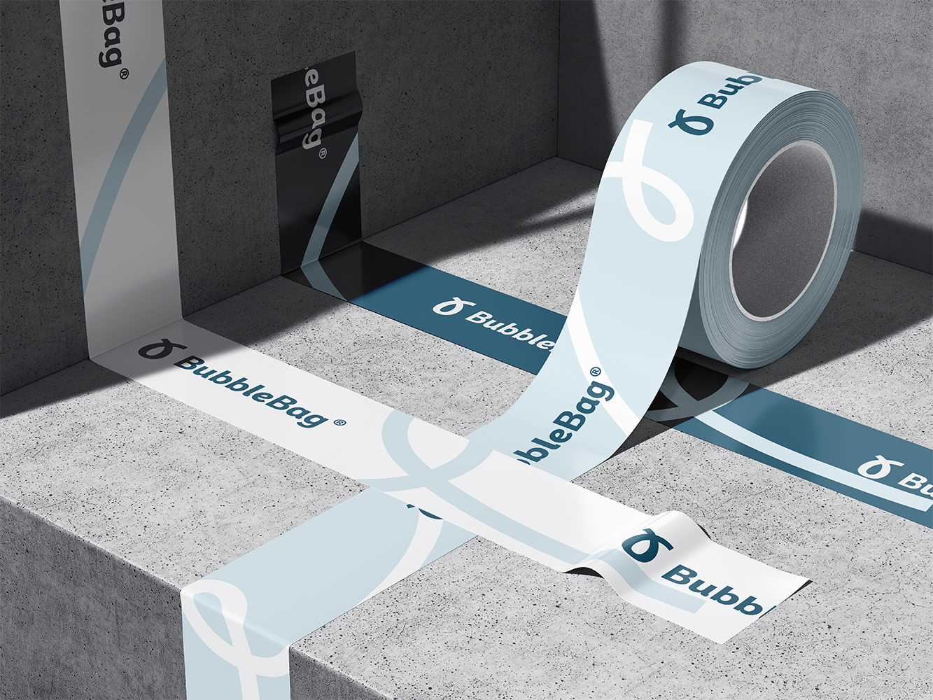 identyfikacja wizualna opiera się na stworzeniu spójnej architektury marki, w której centralne logo BubbleBag® stanowi fundament dla klarownego systemu sub-marek. Opracowany branding charakteryzuje się nowoczesnym minimalizmem, który wizualnie komunikuje świeżość, higienę oraz zaawansowanie technologiczne.